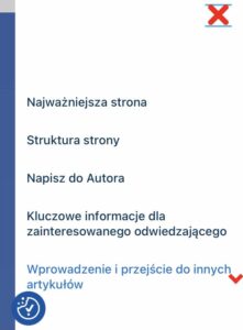 Delikatne dotknięcie tego przycisku palcem otwiera menu. Tam możesz, dotykając dowolny nagłówek, otworzyć główne artykuły i rozpocząć ich czytanie lub dotykając czerwonej strzałki, przejść do większej liczby nagłówków innych artykułów, które są równie istotne.