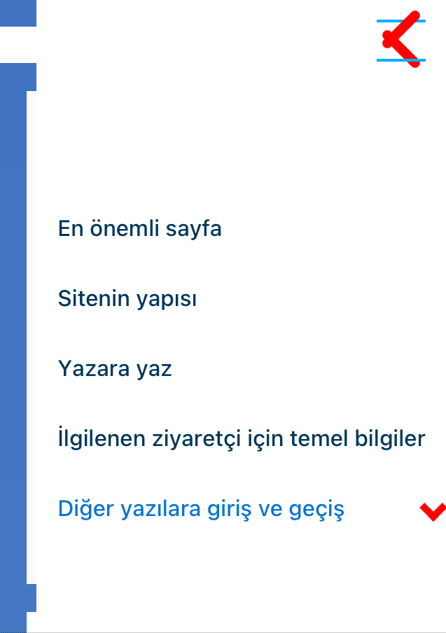 Sitenin her sayfasında sağ üst köşede üç yatay çizgiden oluşan kırmızı bir buton göreceksiniz.